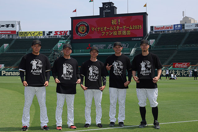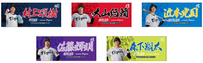 本日2日(水)より、「マイナビオールスターゲーム2025」にファン投票にて選出されました、 #村上頌樹 選手 #大山悠輔 選手 #近本光司 選手 #佐藤輝明 選手 #森下翔太 選手の記念グッズを発売いたします! ▼詳細はこちら hanshintigers.jp/news/topics/in… #マイナビオールスターゲーム2025 #ファン投票 #90th pic.x.com/Uozat8GzRv