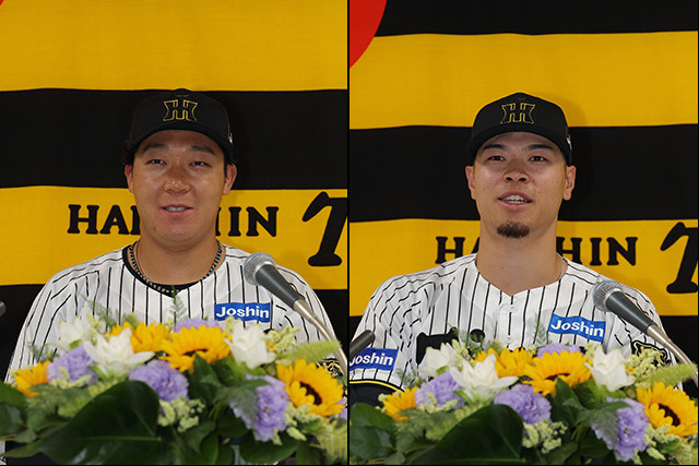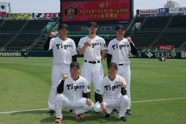 本日、「マイナビオールスターゲーム2025」のファン投票で選出された #村上頌樹 選手 #大山悠輔 選手 #佐藤輝明 選手 #森下翔太 選手と #近本光司 選手が会見を行いました。 ▼会見の様子はこちらから hanshintigers.jp/news/topics/in… #マイナビオールスターゲーム2025 #ファン投票 #90th #阪神タイガース pic.x.com/zPBRaDvHte