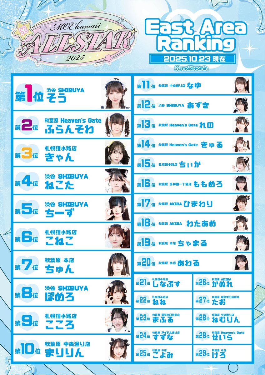 🌟MOEkawaii ALL☆STAR2025🌟 ただいまファン投票開催中!! 2回目(10/22時点)のランキングを発表しました❣ 詳しくはコチラ▷▷▷ maidreamin.com/information/de…