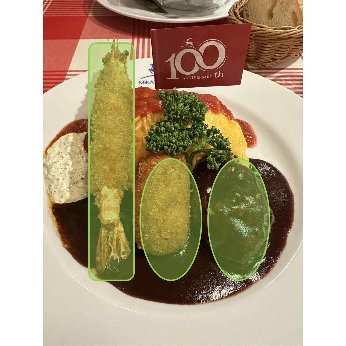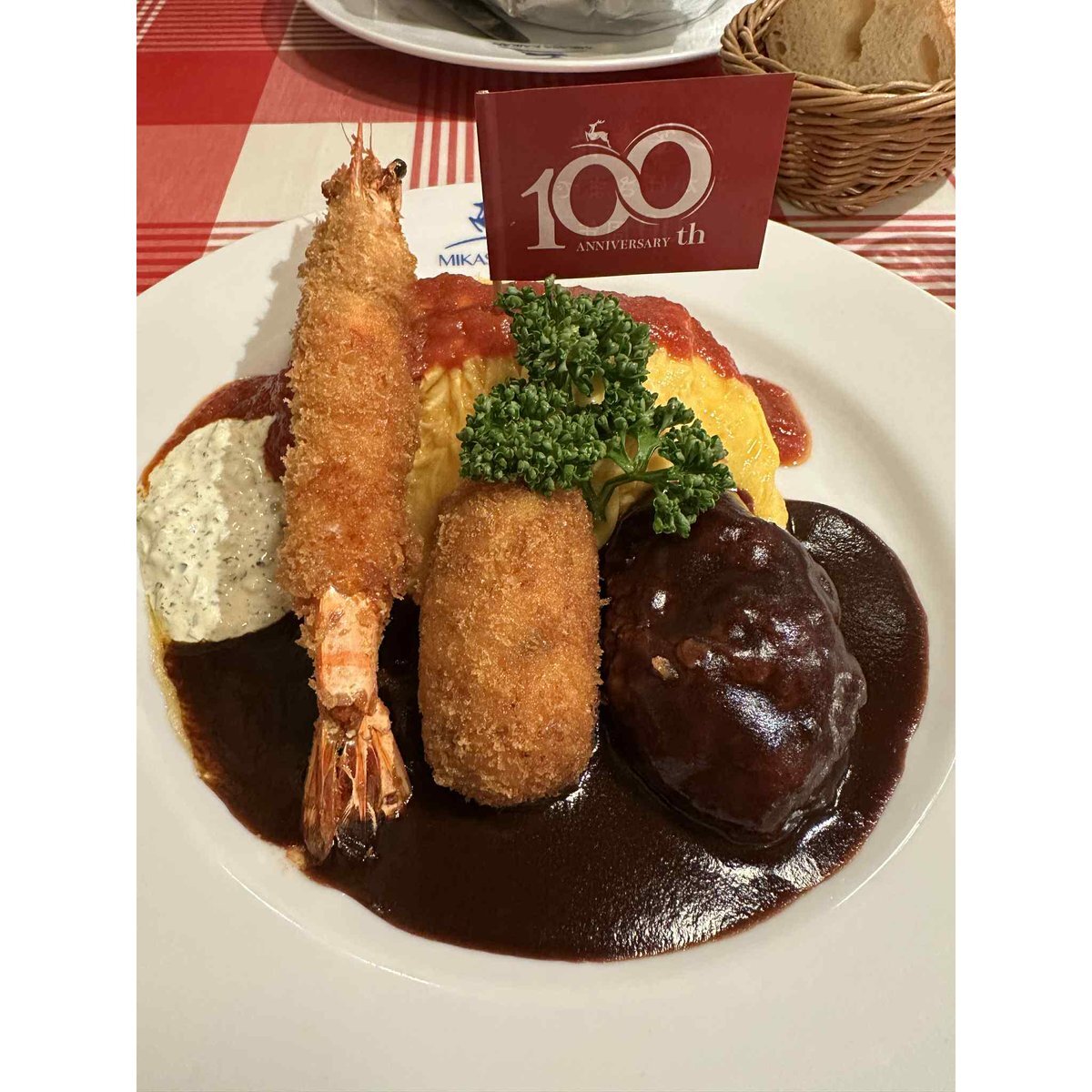 #三笠会館 100周年記念の特製オムライス エビフライ・コロッケ・ハンバーグで 周年の「100」を作ってます。 ズワイ蟹のクリームコロッケ あらびきハンバーグ 有頭エビフライ 3種のせ 単品注文より1,000円OFF  ¥2,740(税込)  銀座洋食 三笠會館 武蔵小杉店 shorturl.at/RT8fT #洋食 pic.x.com/KWKmJYdju2