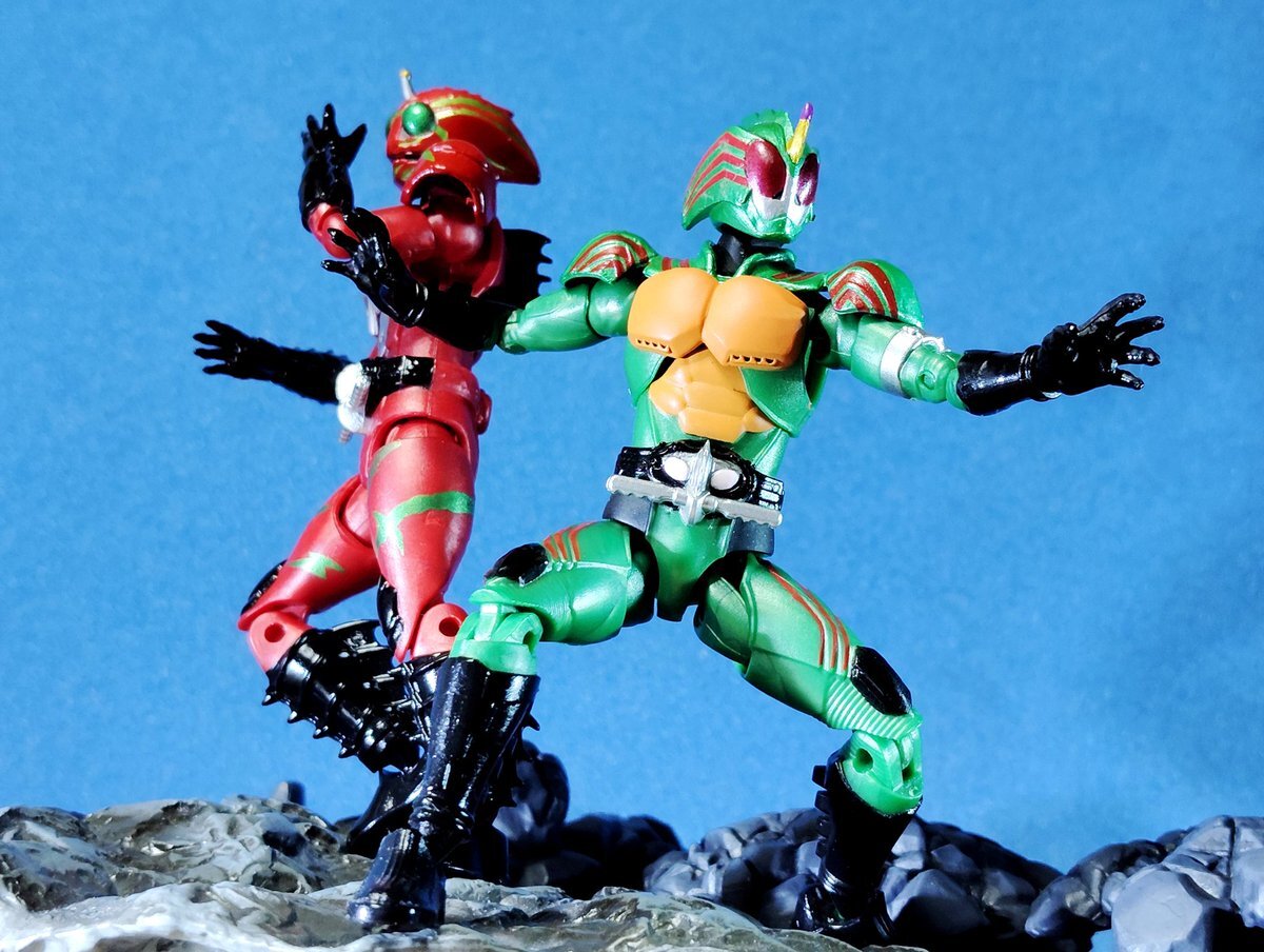 #夜のフィギュア撮影会 お題【フリー】 『仮面ライダーアマゾンズ』 「狩り、開始。」 #仮面ライダーアマゾンオメガ #仮面ライダーアマゾンアルファ #shodo仮面ライダー 谷口賢志さん誕生日とゆうことで✨ pic.x.com/VDYH1Hnhw2