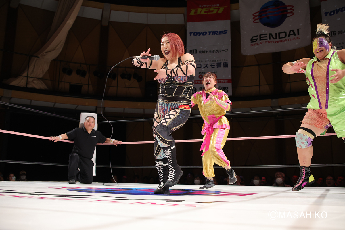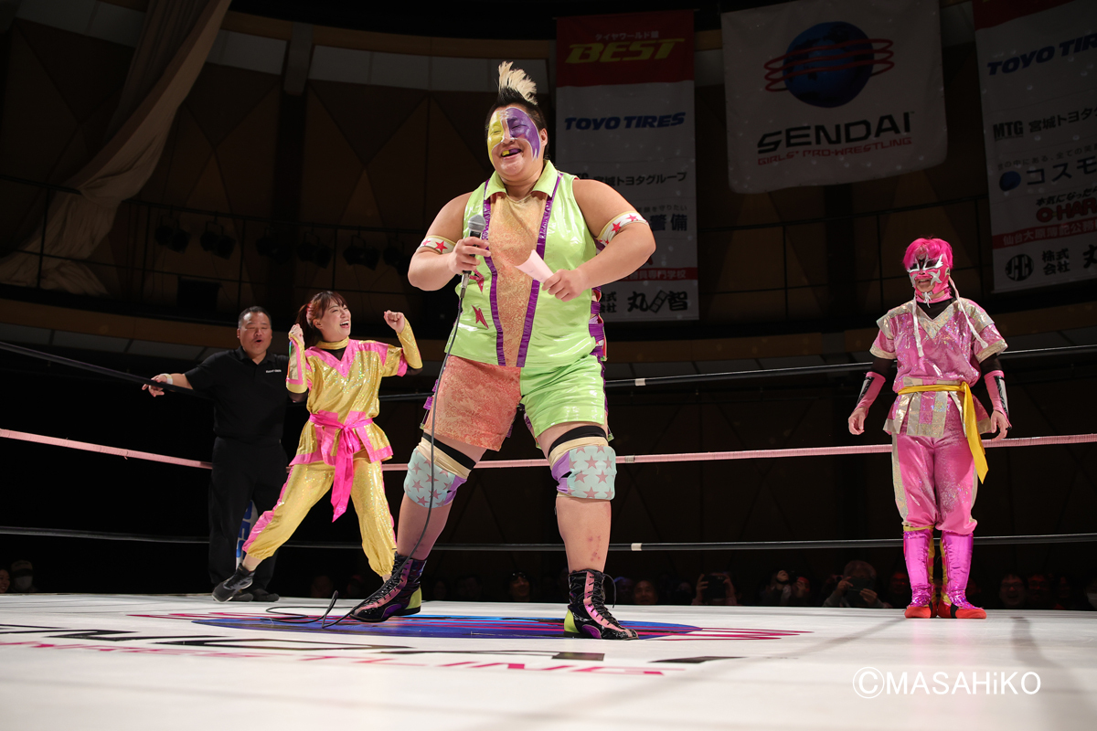 センダイガールズプロレスリング 2025.11.23 大阪・アゼリア大正ホール 第3試合 救世忍者乱丸&高瀬みゆき vs DASH・チサコ&ライディーン鋼① #救世忍者乱丸 選手 #高瀬みゆき 選手 #DASH・チサコ 選手 #ライディーン鋼 選手 #SENJO pic.x.com/Axiu7U1Rkz