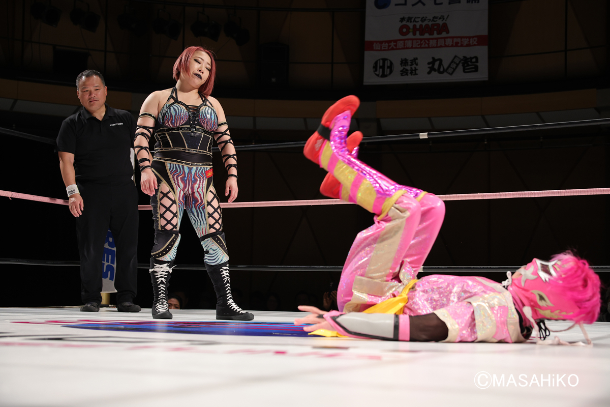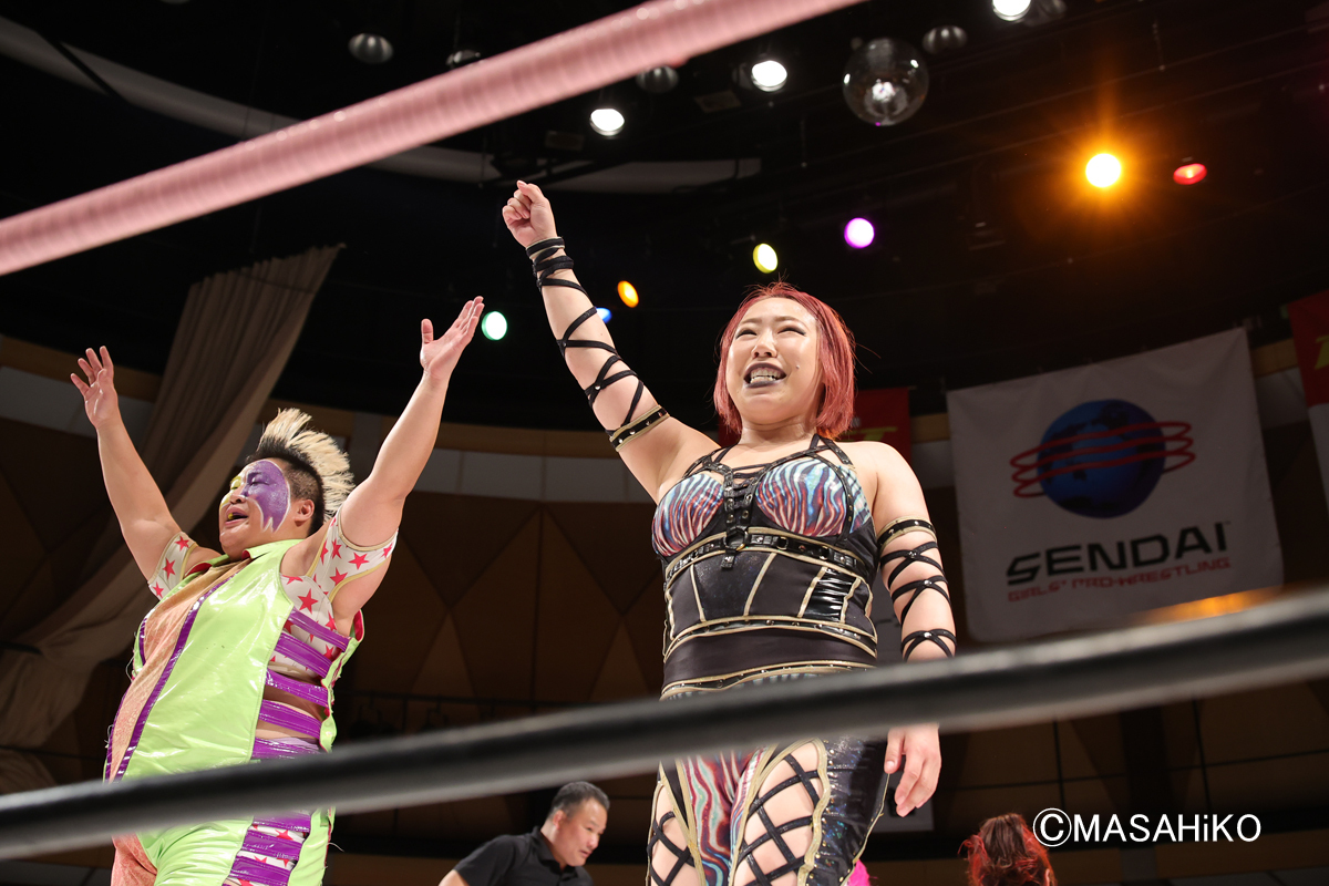 今日の仙女アゼリア大正大会、高瀬さんと乱丸さんが組めば、そこは乱丸フェスタ😉 チサコさんがどうなるかと心配でしたが、チサコさんの引き出しの多さにビックリでした😅 キッチリ試合も決めて、流石チサコさんでした😜 #SENJO #高瀬みゆき #救世忍者乱丸 #DASHチサコ #乱丸フェスタ pic.x.com/wCHVVg02Af