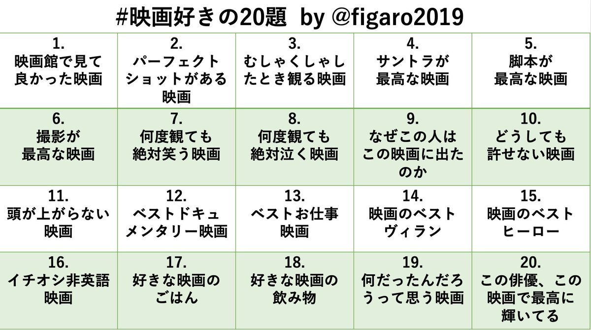 タグと画像をお借りしてやってみました #映画好きの20題 1.ハリー・ポッターシリーズ 2.スリーピー・ホロウ  魍魎の匣 3.シン・ゴジラ  下妻物語 4.オペラ座の怪人  ピアノ・レッスン 5.スター・ウォーズ エピソード3/シスの復讐 6.ラスト・エンペラー 7.アダムス・ファミリー2 8.レナードの朝 pic.x.com/kYg6H2eqQz