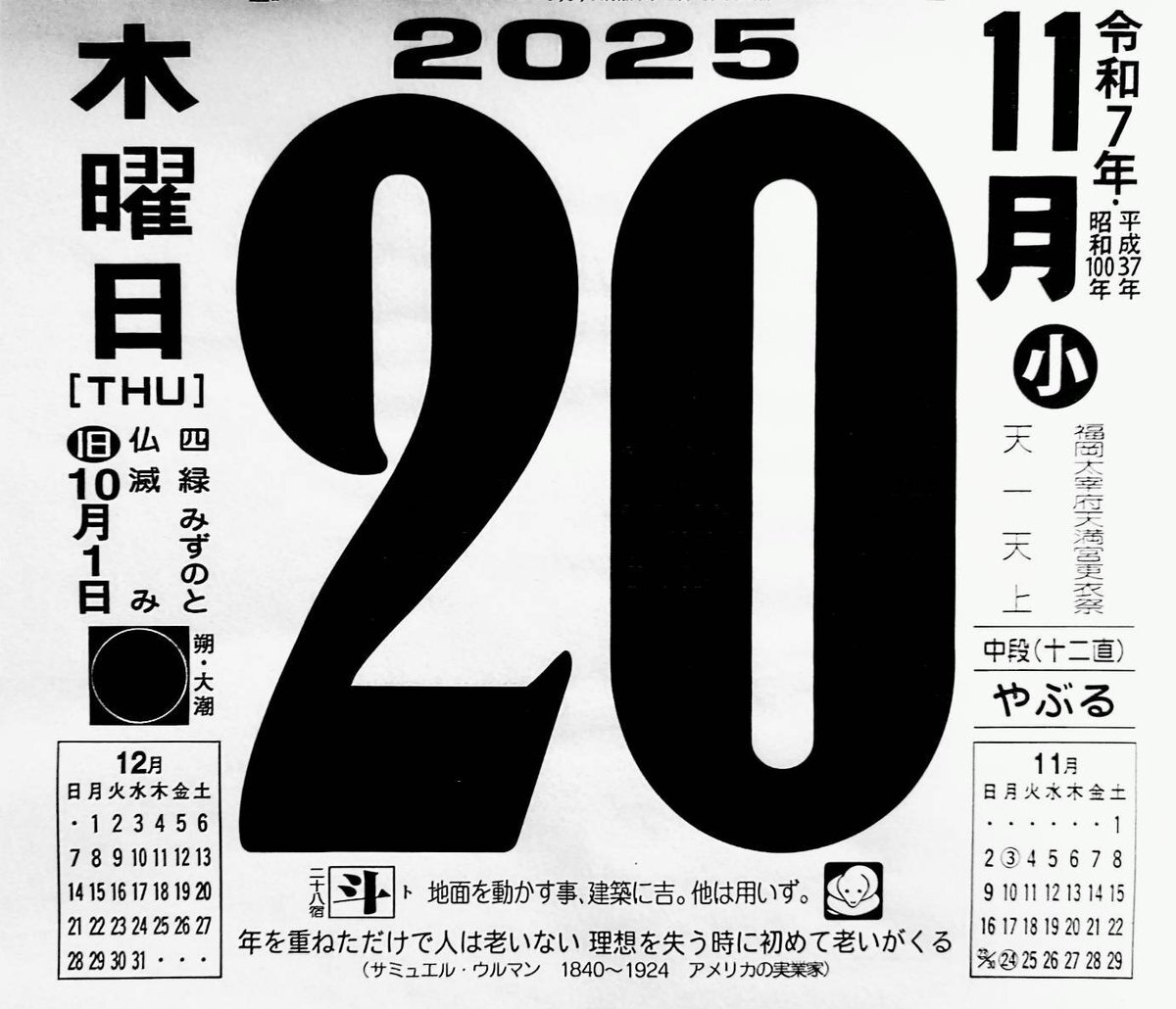 おはこよみ🦉 \福井 🌞/ 𓂃 ✿𓈒𓏸11月20日.旧暦10/1𓂃 立冬│金盞香 仏滅│四緑木星│癸巳🐍 斗宿│破│月齢🌑29.6 #毛皮の日 今日は #新月🌑 月の満ち欠けが始まる月。再スタートしたり、何か新しい事を始めるのに適しているとも言われてます。 #企業公式が毎朝地元の天気を言い合う pic.x.com/btlNBOJNal