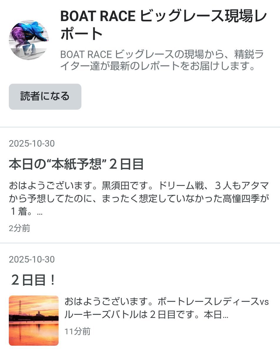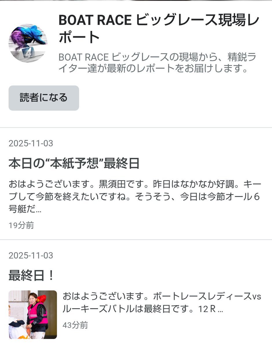 #ビッグレース現場レポート は多摩川 #レディースvsルーキーズ 最終日! こちらの最終日注目はやっぱり午後の“ピットリポート”。優勝関連では黒ちゃん節も最高潮。ぜひ読んでね。 そしてこれからもよろしく! #黒須田守 #畠山直毅 #多摩川 #ボートレース #ボートレース多摩川 boatrace-g-report.hatenablog.jp pic.x.com/opjaBTDP9k