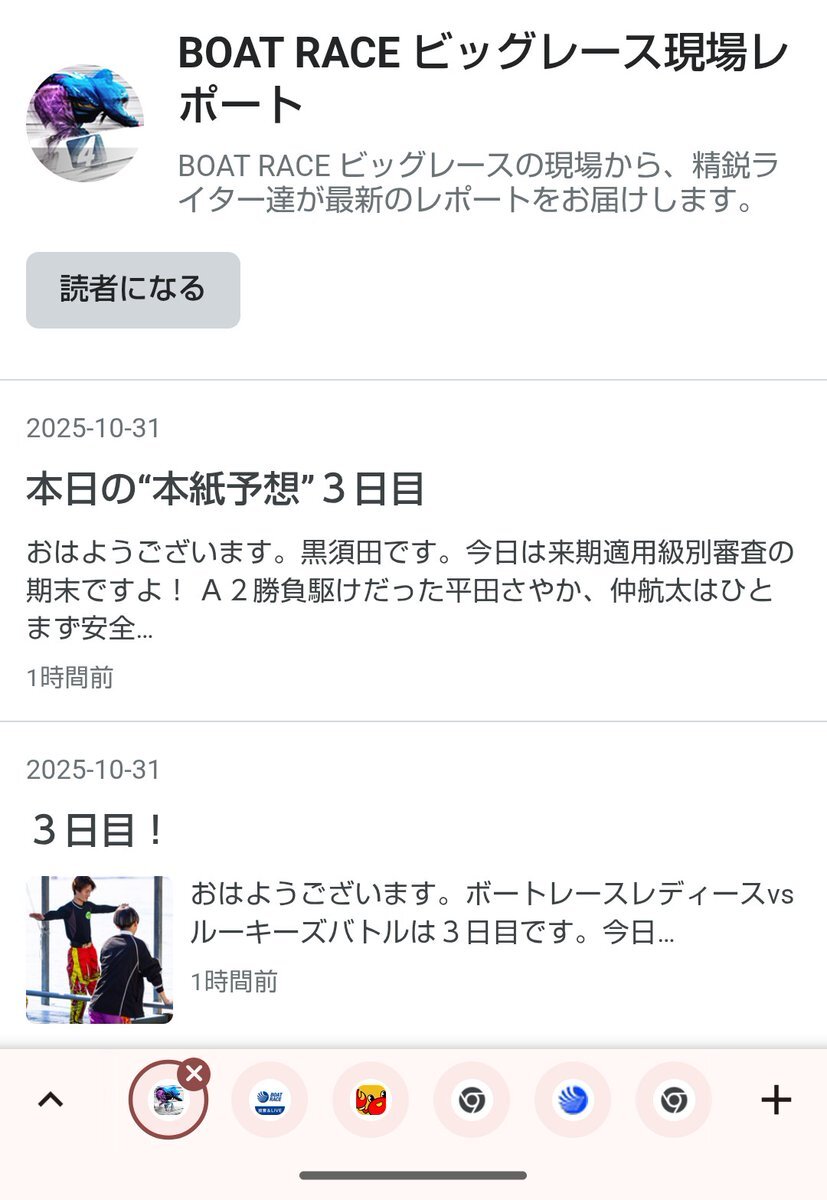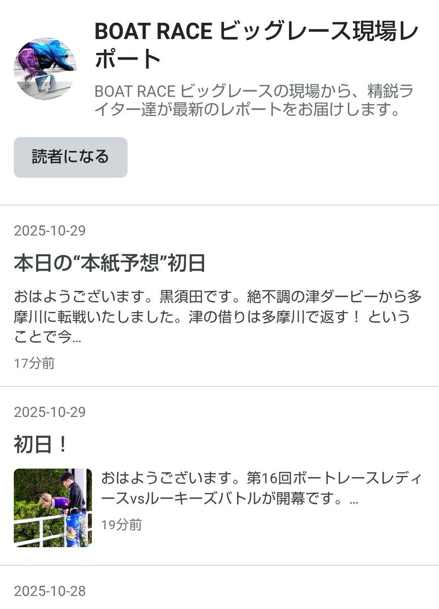 BOATBoyWEB、次回は福岡SGですが、“二元中継”の「 #ビッグレース現場レポート 」は明日初日の多摩川 #レディースvsルーキーズ やっております。こちらのほうが“黒ちゃん濃度”が高めです(笑)。ぜひひとつ。 #黒須田守 #畠山直毅 #多摩川 #ボートレース #ボートレース多摩川 boatrace-g-report.hatenablog.jp pic.x.com/MfKViToztl