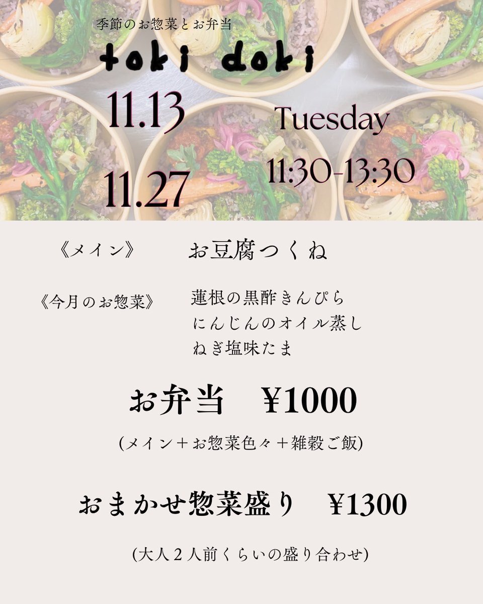 当店のシェアキッチン(レンタルキッチン)会員様がお惣菜お弁当の販売をします! 日程:11/13(木) 販売時間:11:30-13:30 #東京都 #町田市 #成瀬 #南成瀬 #JR横浜線 #徒歩1分 #町田グルメ #町田ランチ #豆腐つくね #長津田 #つくし野 pic.x.com/wLHsctPfvc