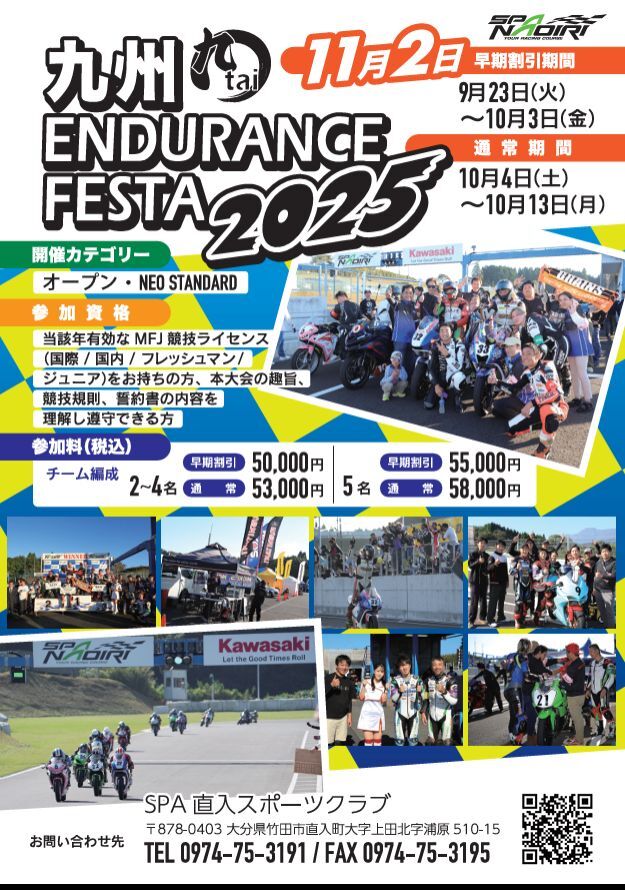 🏍️SPA直入サーキット走行会のお知らせ🏍️ カワサキPLAZA大分 & (有)モトクルー合同で、SPA直入サーキット走行会を行います! まだエントリー可能です!! お申し込み先はカワサキPLAZA大分(有)モトクルー、もしくは私へのDMでお問い合わせください! 場所   #SPA直入 開催日時 11月23日 pic.x.com/dpw5p5UJpq