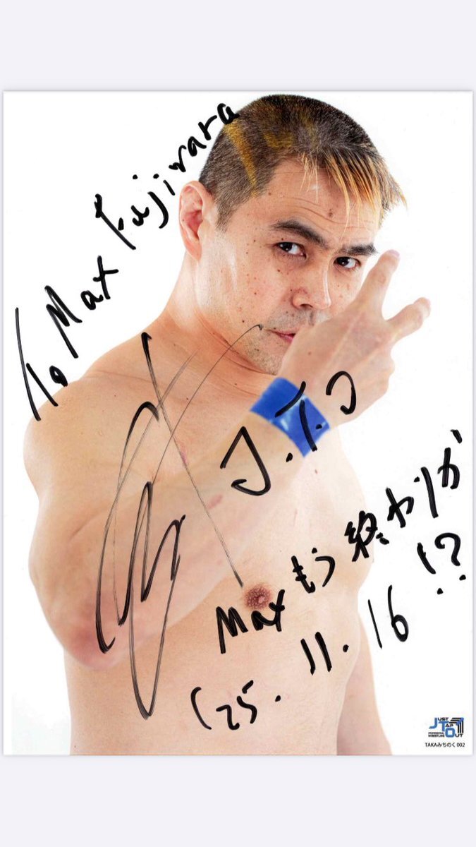 TAKAみちのく選手のポートレート 30年ぐらい前にみちのくプロレスが角館に来た時、リング上でサスケ選手に言い放った言葉をMAX藤原版にして一筆入れていただきました ありがとうございました #TAKAみちのく #JTO #サスケもう終わりか? pic.x.com/8SuT7obnlP