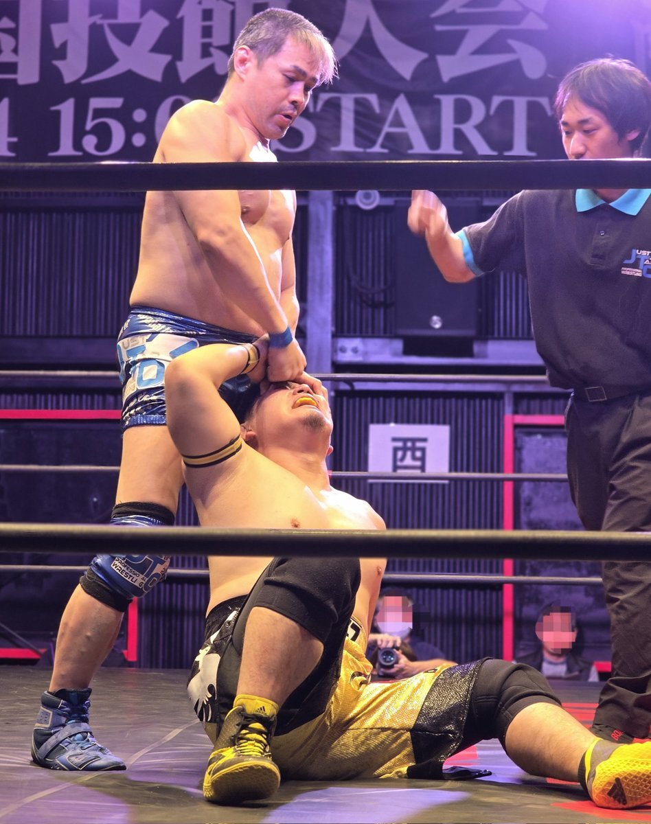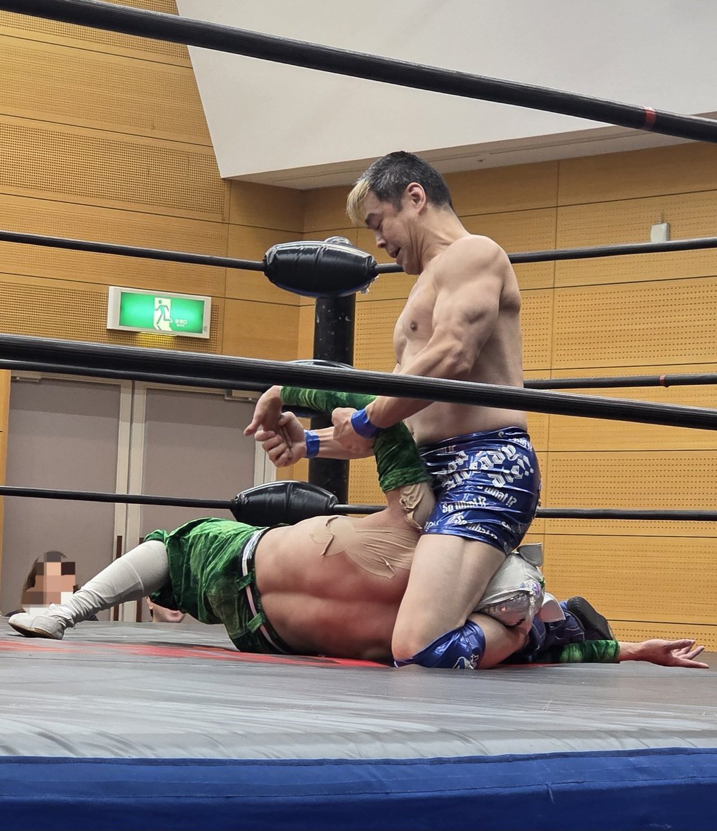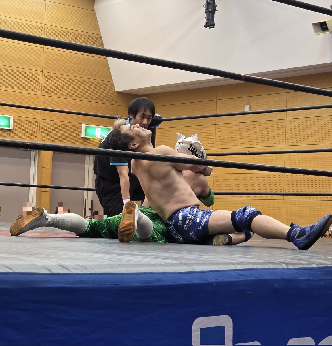 2025.11.15(土) JTO東北ツアーin北上 サンレック北上(岩手県北上市) ここから写せた選手の試合を振り返り✨ 第一試合、昨日青森大会でデビューしたねぷ太郎選手にフィニッシュのジャスト•フェース•ロックをかけるTAKAみちのく代表。 第一試合からテクニックの応酬が凄い‼️ #pw_jto #TAKAみちのく pic.x.com/MnISXIAmwr