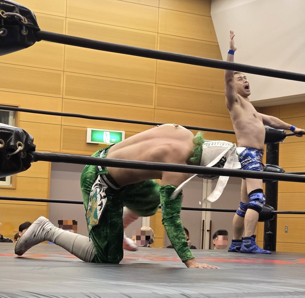 2025.11.09 JTO 山口大会9 ホームだからあんな高いところから 飛べるんですね。 あれは凄かった…当たれば良かったんだけど…😅 #pw_jto #TAKAみちのく 👽️ #駿之介 pic.x.com/ziBDNV16CH