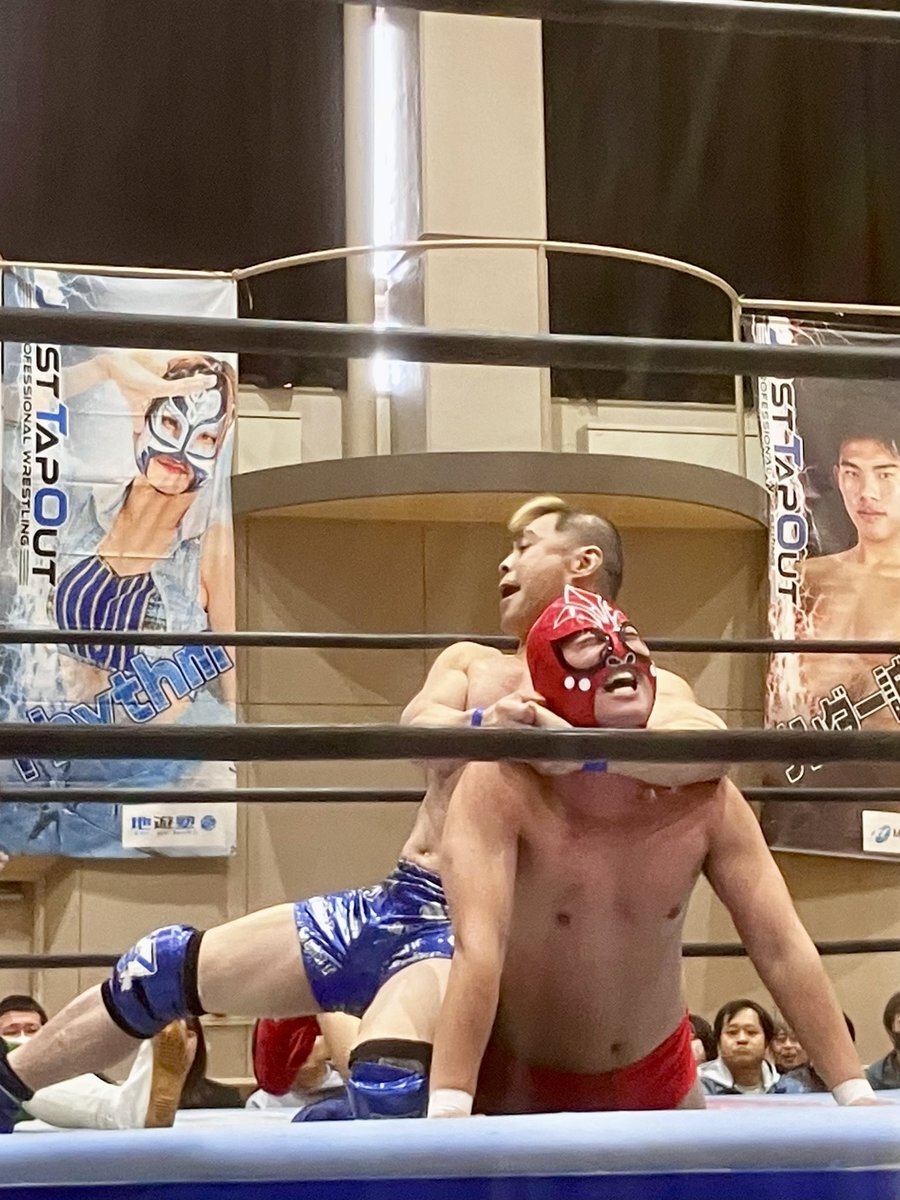 2025.11.15(土) JTO東北ツアーin北上 サンレック北上(岩手県北上市) ここから写せた選手の試合を振り返り✨ 第一試合、昨日青森大会でデビューしたねぷ太郎選手にフィニッシュのジャスト•フェース•ロックをかけるTAKAみちのく代表。 第一試合からテクニックの応酬が凄い‼️ #pw_jto #TAKAみちのく pic.x.com/rtR8FAHuWc