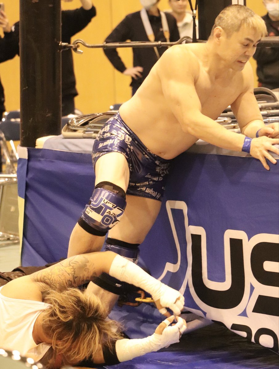 11.8 JTO佐賀大会 TAKA代表、先制パンチくらうけど 途中からはいつもの自分のペースにもっていく感じですね! #pw_jto #TAKAみちのく #ユーク・カガトビ pic.x.com/6ztfj1342A