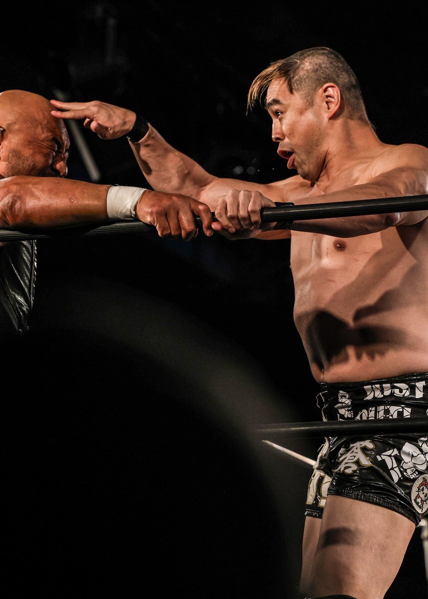 あずさちゃんが言う『チョロオジ』が近づいてきた😨 何か僕に文句言いってるけど、あずさちゃんに負けた男が、今さら何を言っても...ねぇ これからはJTOの若いメンバーと佐世保を盛り上げていくぞー!おー! #TAKAみちのく #pw_jto pic.x.com/jiauLkPolI