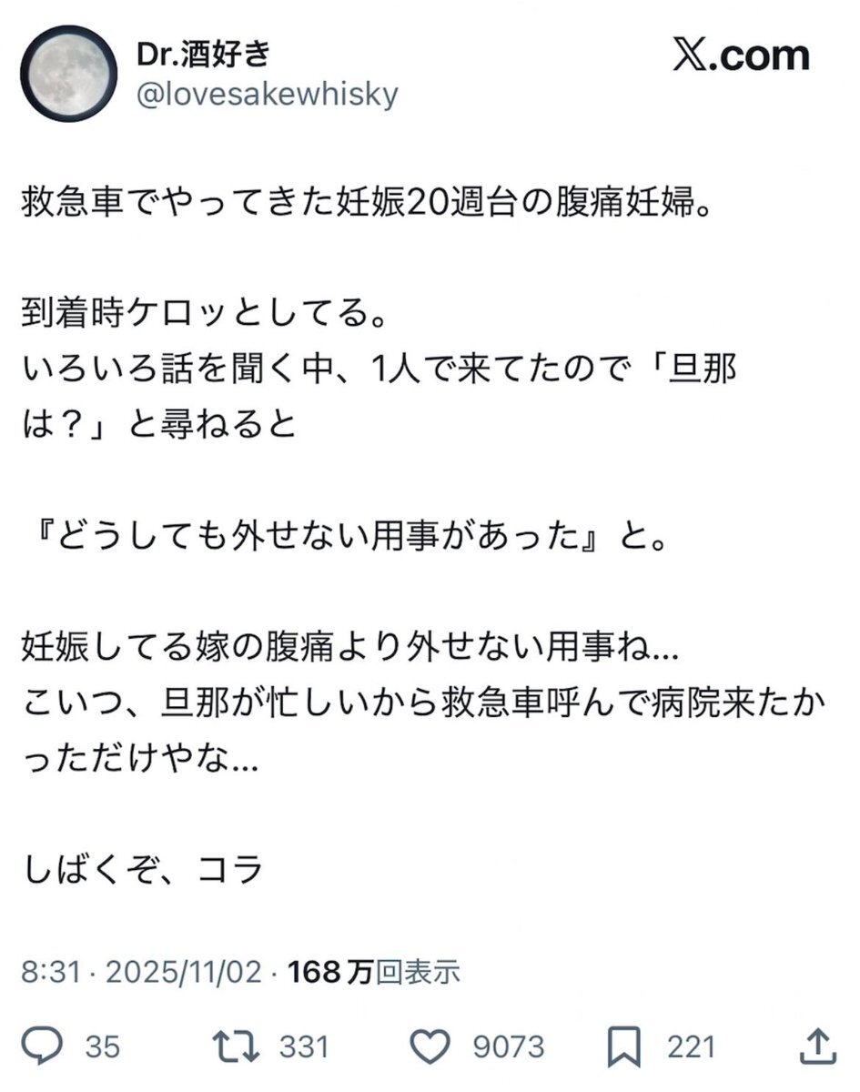 返信先:@lovesakewhisky流石、旦那が役立たずなだけの妊婦さんにしばくとか暴言言うお医者様なだけありますね 女性が女医希望するのはただ男性に診察されたくないってだけですよ 男性医師は女性患者の申告軽視する傾向があることと、性被害等のリスクがあるのでね そんなに女叩き大好きなら産婦人科医に何でなったんですか? pic.x.com/1DjaQ884R5