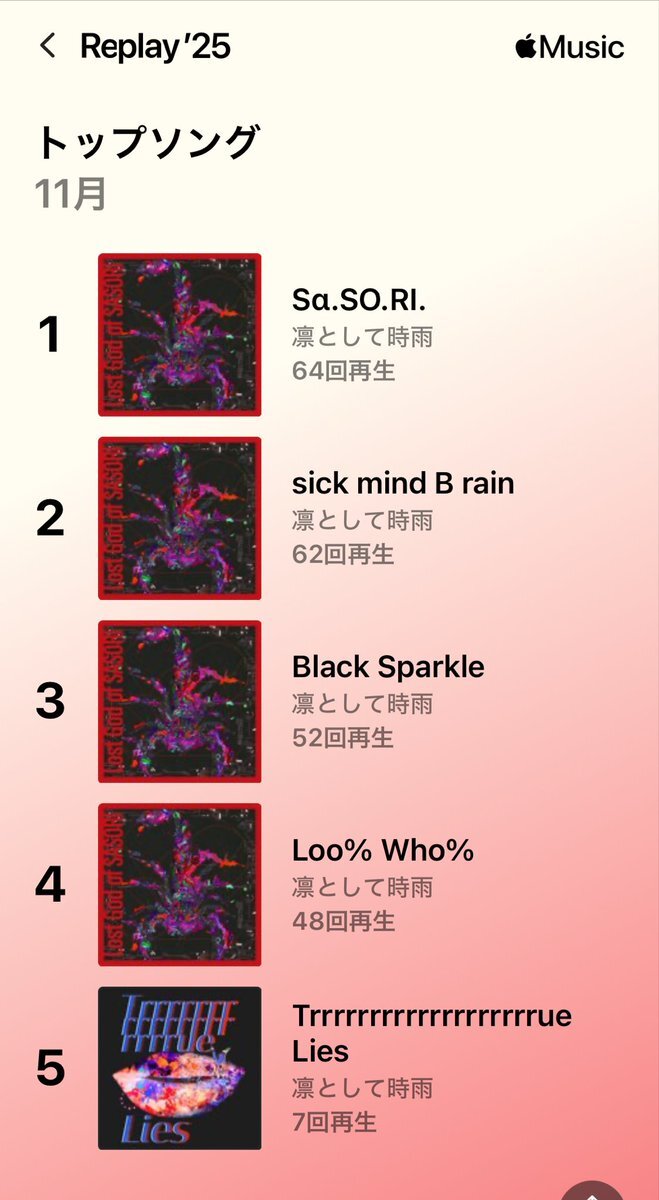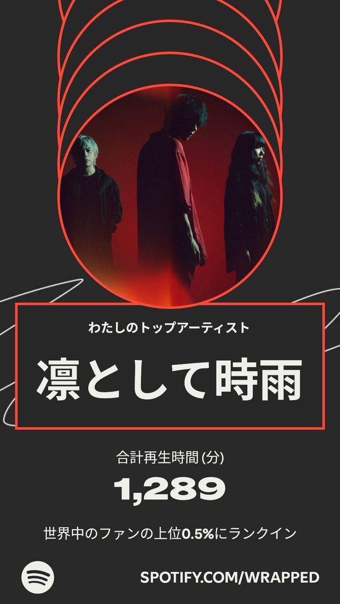 今年のわたしのトップアーティストは、凛として時雨でした。わたしの聴き方について詳しくは #Spotifyまとめ をチェック。 spotify.com/wrapped-share/… pic.x.com/DPDEp1gwsE