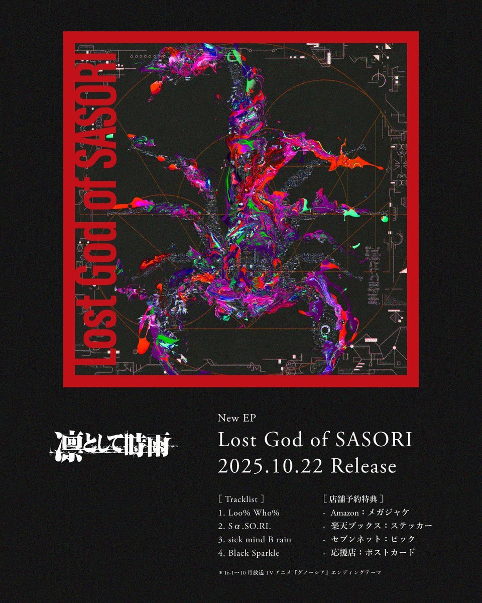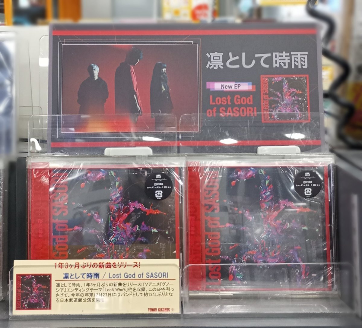 #凛として時雨】 NEW EP『Lost God of SASORI』がシブツタ地下2Fに本日入荷🎊 TVアニメ「グノーシア」エンディングテーマ「Loo% Who%」を含む全曲新録の4曲を収録💿 CD限定のボーナストラックとしてテレビ用に録音された音源を、TK自身が本EPのために新たにミックスをした特別バージョンも収録✨ pic.x.com/cnJ2VZ50Km
