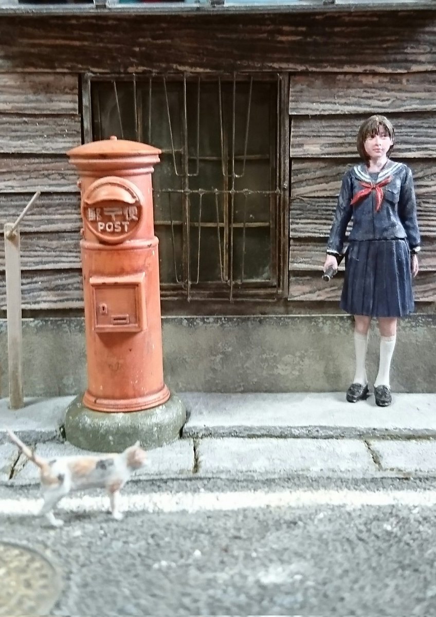 相変わらずスケール感がバグります。 そして、窓のガードやポストの形がセーラー服とマッチしてて好き。 しかも、卒業証書をもってる! 誰を待ってるんだろ。猫をみつけて遊んでるところを待ち人に見られるところまで妄想した← x.com/tg43wataru/sta…