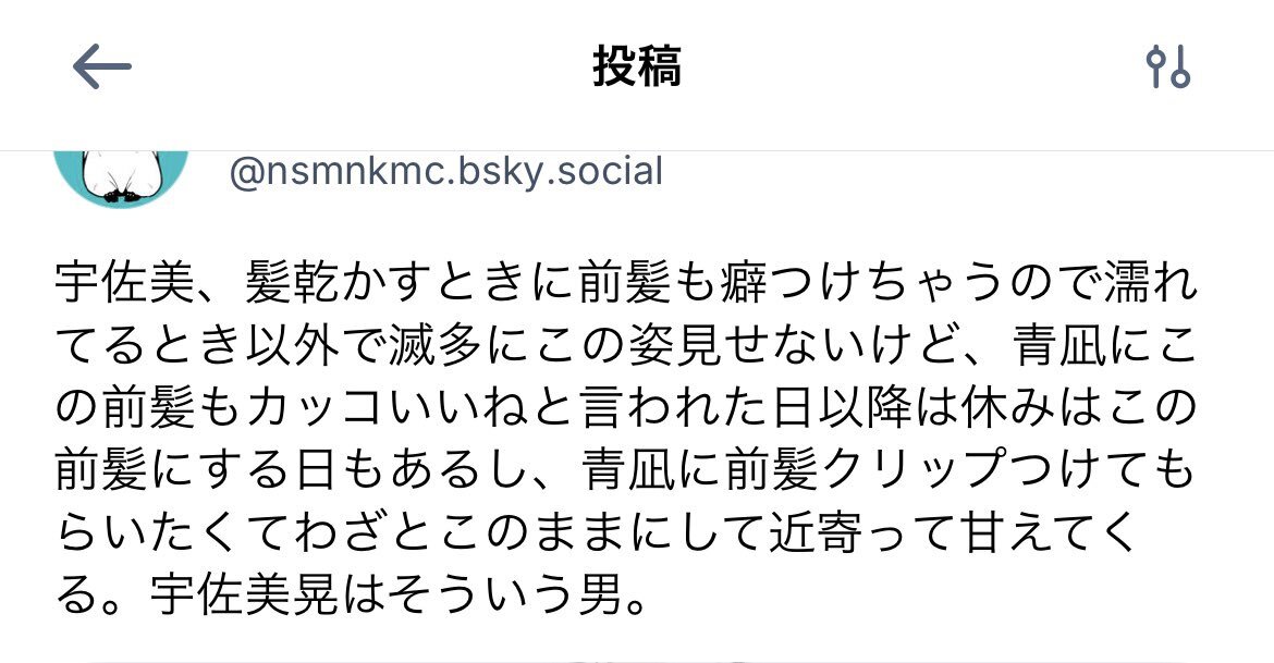こぼれ話が大好きで、🦋の方の中道先生の呟きも尊くて大切なエピソードだと思っていて(ほんとは内緒にしておきたいくらいです☺️) あっ そうなんだ、そうですよね、うんうんと頷きながら、♡も大切に押させてもらってるしすぐにブックマークしています⋆˙⟡ 宇佐美くんはそういう人ですね☺︎ x.com/nsmnkmc/status…