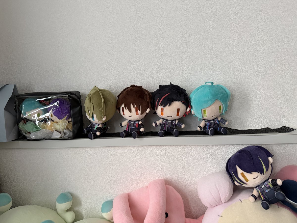自分より小さいぷかにんぬいを眺める高峯くんと高峯くんにかまって欲しい守沢氏とちゃんとカメラ目線してくれてる鉄虎くんと落ちちゃった忍くんとそれを眺める深海くん。 pic.x.com/8hh3d1FnEa