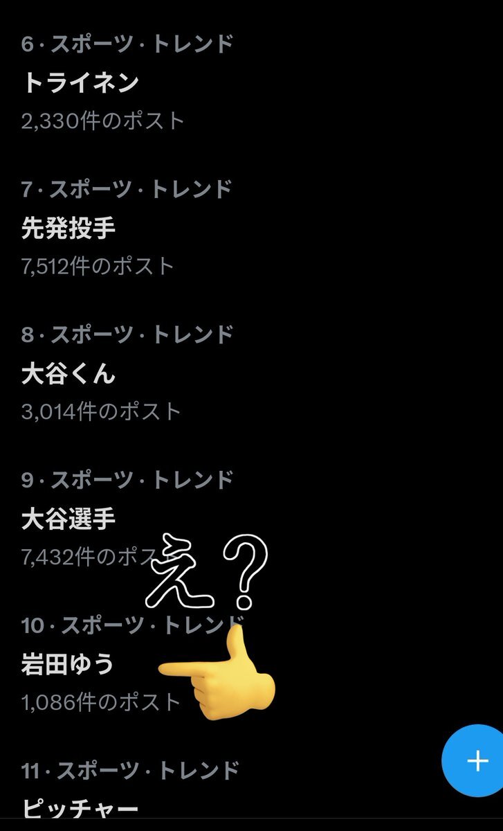 これ岩田さんのことかな? スポーツのトレンドにランクイン #岩田ゆうた pic.x.com/GOUVmbyz4j