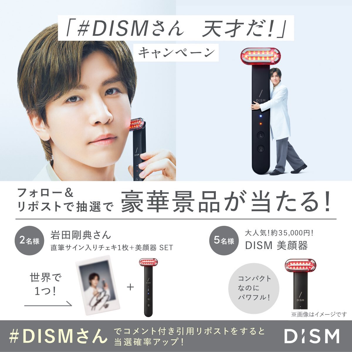 / 岩田剛典さんがブランドアンバサダーに就任✨ 記念プレゼントキャンペーン開催🎁 \ 🎯抽選で2名様に 岩田剛典さん直筆サイン入りチェキ+DISM美顔器(約3.5万円相当)  🎁5名様にDISM美顔器(約3.5万円相当)をプレゼント! ▼応募方法 ①@dism_angfa をフォロー ②リポスト
