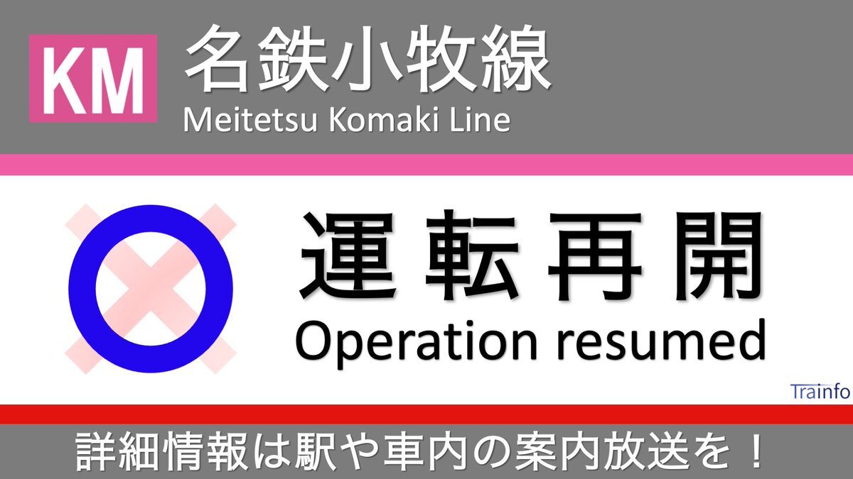 名鉄小牧線、2025/09/23火曜午前0時38分、運転再開した。#名鉄自分用