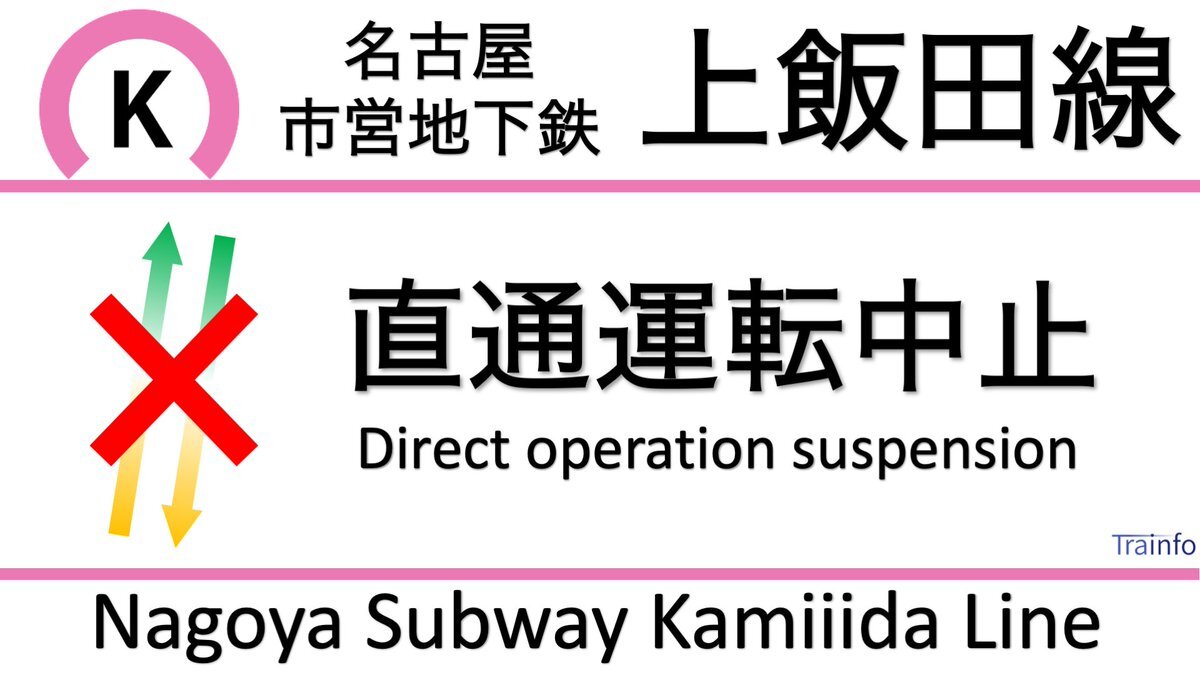 【名古屋市営上飯田線 小牧方面 直通運転中止】 地下鉄上飯田線は、名鉄小牧線内での人身事故の影響で、春日井・小牧・犬山方面との直通運転を中止し、上飯田駅で折り返し運転をしています。 pic.x.com/gek9amYg8f