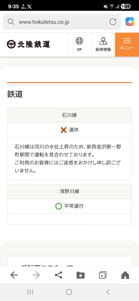 IRいしかわ鉄道線、大雨のため金沢~大聖寺運転見合せ。 北鉄石川線、河川水位上昇のため、野町~新西金沢運転見合せ。 pic.x.com/4xzRvrG5Tq