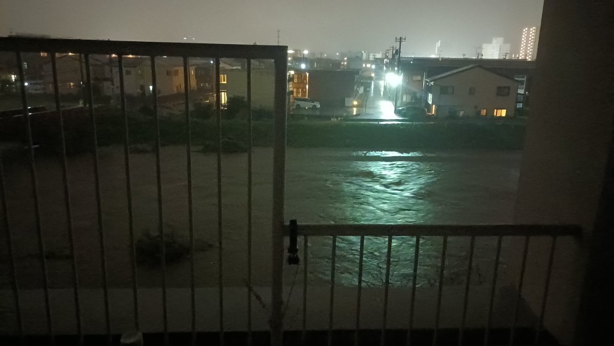 洪水が流れている伏見川。 IRいしかわ鉄道も運転見合わせだよね。 pic.x.com/azanBULFm9
