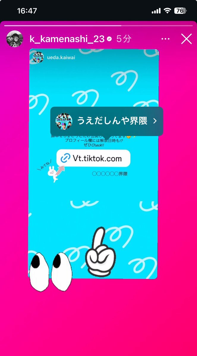 instagram.com/stories/k_kame… かめからもうえだしんや界隈のお知らせ📢 #亀梨和也Instagram