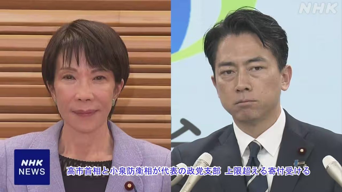 高市早苗首相と小泉進次郎防衛相が代表の政党支部「上限超える寄付を受けた」 news.web.nhk/newsweb/na/na-… 政治資金規正法は企業の規模に応じ「1年間に寄付できる金額の上限を定めていて、それを超える額を寄付することも、受け取ることも禁じている」。 そんなことより自民党議員削減しましょう。