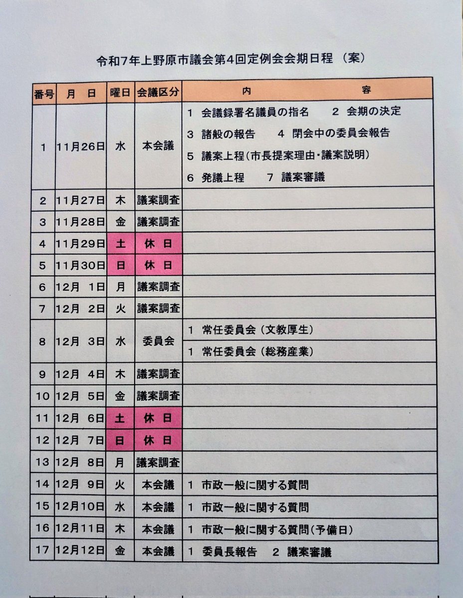 2025.11.26(水) 本日から12月12日まで17日間の会期日程で、「令和7年上野原市議会第4回定例会」が開会しました。 市長より17議案上程と議案説明があり、条例制定1件・令和7年度補正予算8件については審査の結果、本日初日採決となりました。 一般質問の通告は、明日正午までが締め切りです。 pic.x.com/rhvvJrHthr