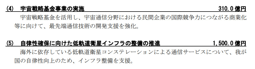 総務省の令和7年度補正予算案。 宇宙戦略基金に310億は分かるとして、低軌道通信衛星コンステに1,500億?! 宇宙関連予算の付け方が大胆になってきたな・・・ soumu.go.jp/main_content/0… pic.x.com/UlXBHHCxUb