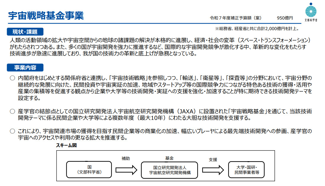 経産省と文科省の令和7年度補正予算案。 宇宙戦略基金は文科省が950億、経産省が740億。総務省分と合わせると第3期分はトータル2,000億円枠になります。 #宇宙戦略基金 mext.go.jp/content/202511… meti.go.jp/main/yosan/yos… pic.x.com/LNyyTbn3NC