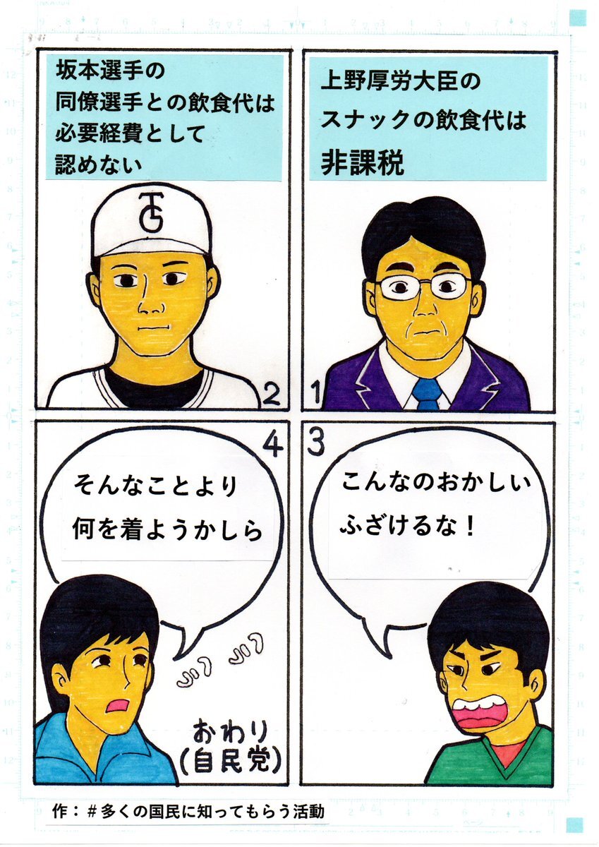 >スナックに政治資金31万円 上野厚労相の資金管理団体(共同通信) #Yahooニュース 自民党は悪の巣窟 上野の事務所は共同通信の取材に「情報交換、意見交換に係る経費で、政治目的に従った適正な支出だ」やて 自分の金でやれ、ボケ、カス news.yahoo.co.jp/articles/b9915…