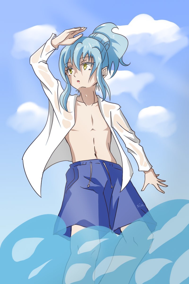 え!?蒼海の涙編の予告映像ヤバくね!? リムル様あなた何そんなうっっっすいの着てんの!? 肌見えてるよ肌!!(*/ω\*) 濡れたら透けるよ!? #転スラFA #蒼海の涙 pic.x.com/VphwlPEN2E