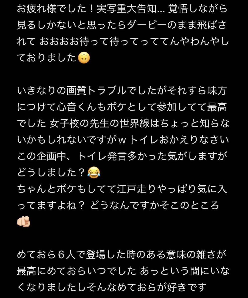 1ヶ月前に分かればシフト休みにできたな… 仕方ない事だけど せめてFC限か期限付きでアーカイブ欲しいな… テレビみたいに 自分で録画予約出来たら互いに不自由ないのに 画録はその時スマホを触れる状態でないとだしな 難し #STPR学校24時 気になるなぁ推しがどんな事話して どんな時間過ごしたのか