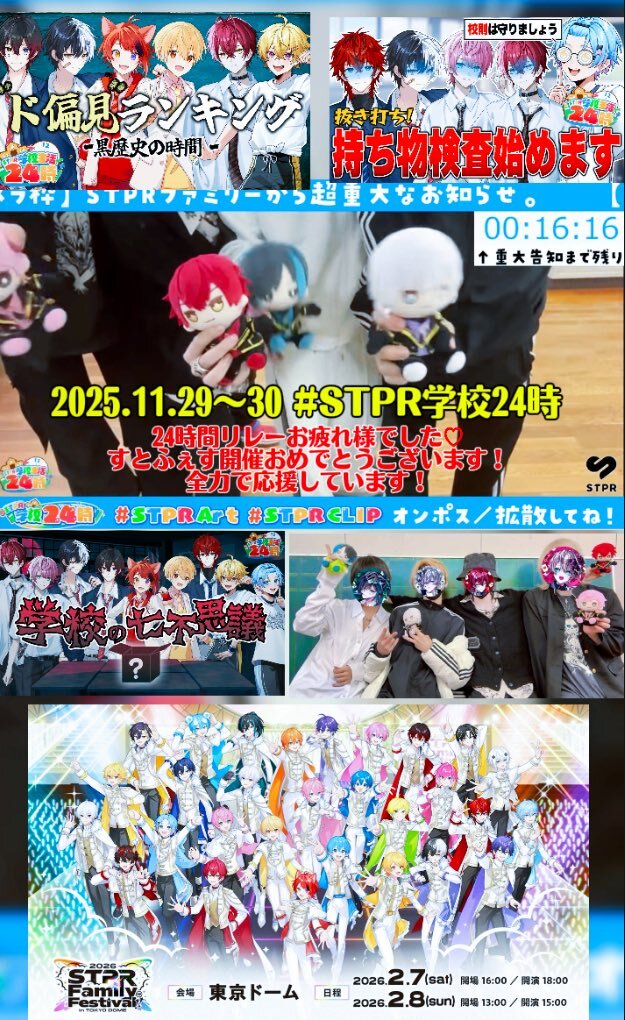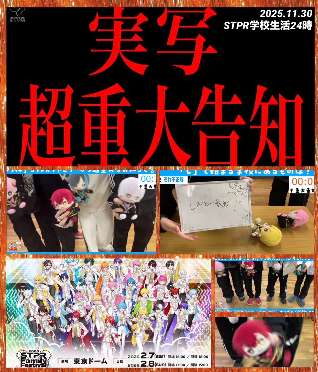 #STPR学校24時 ラスト!! "実写超重大告知" 配信ありがとう𓈒𓏸 素敵な告知ちゃんと受け取ったよ✨ すとふぇす2026。 また東京ドームという大きな舞台に 2日間立てるんだね😭 またキラキラ輝くらぴすくんの姿を 見られると思うとドキドキと 楽しみの気持ちでいっぱいです😻 だいすき。#らぴすみて pic.x.com/q6kmkMrsYd