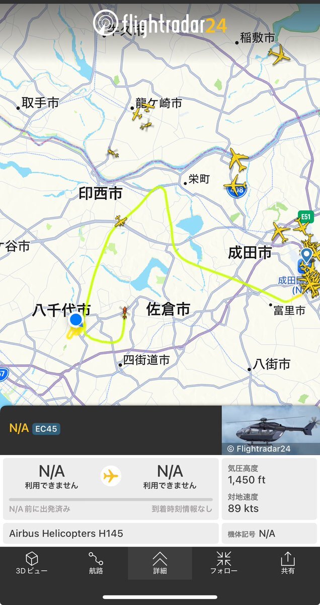 なんだか今日はやたらとヘリコプターやセスナが千葉北西部から茨城県南部にかけてウロウロしているなぁ。 出発地もあちこちだから関連はないのかな。 pic.x.com/PNv59sN6gb