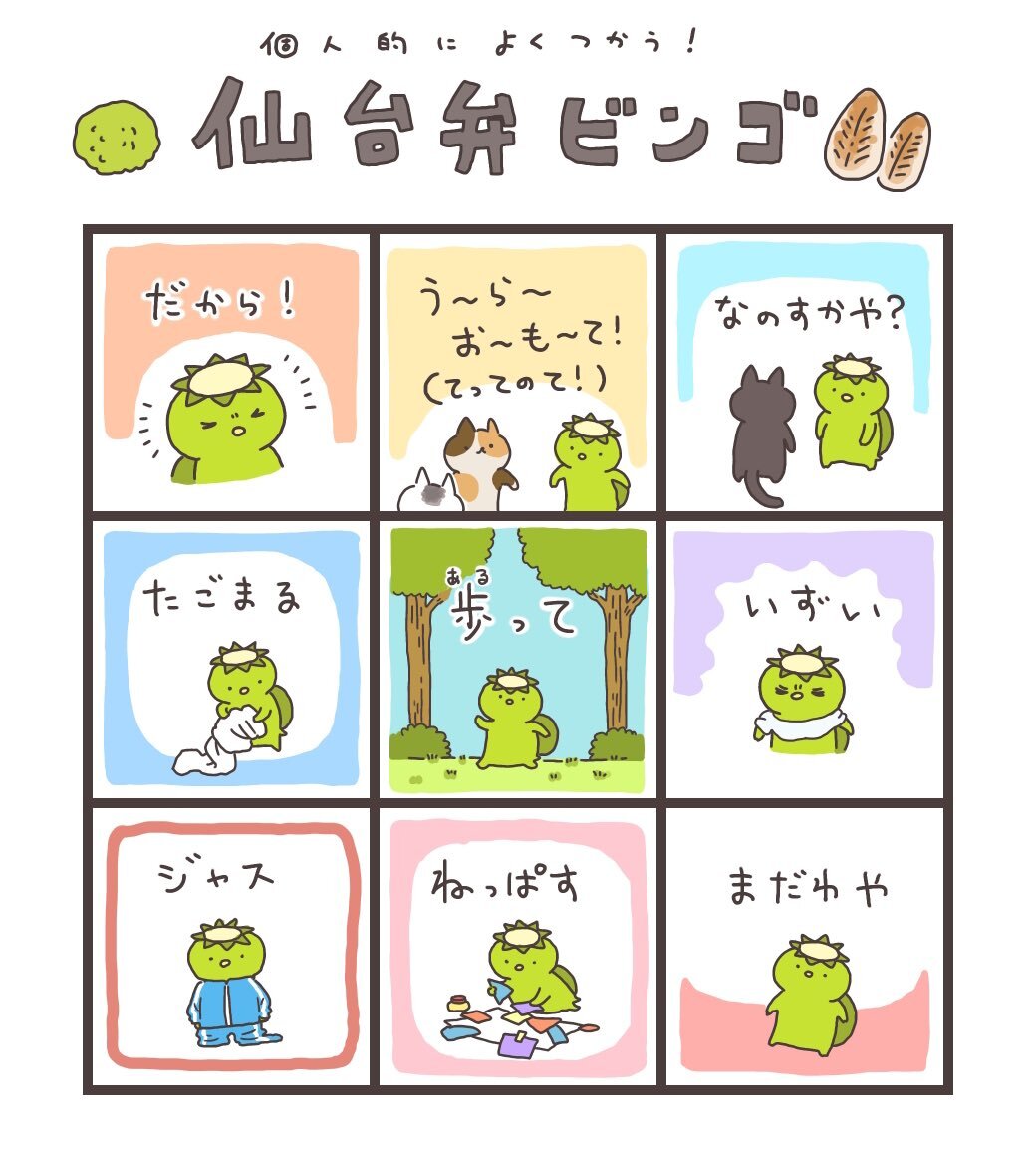 昨日の日記で結構「歩って(あるって)」にびっくりされてたので個人的によく使う仙台弁ビンゴを作りました🍵
