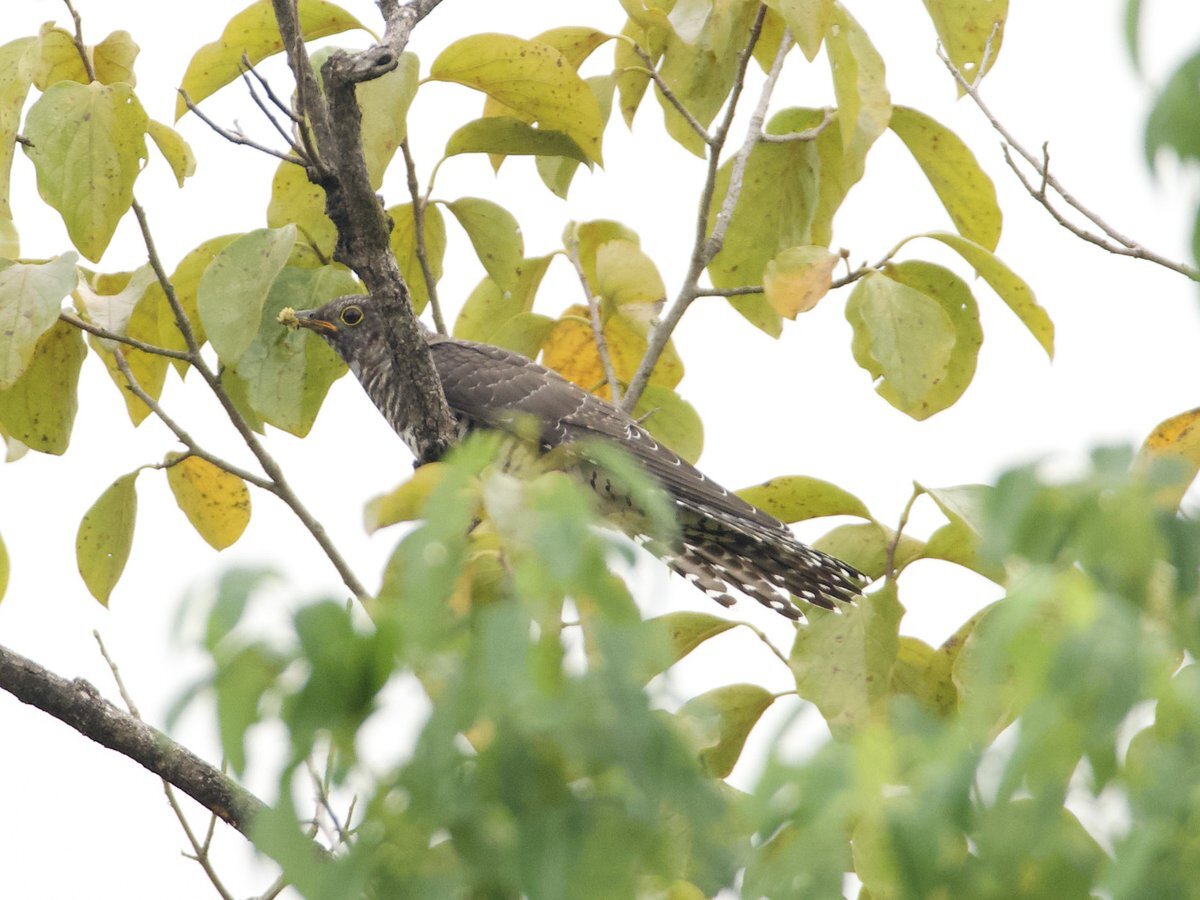 下尾筒、大きさ、横模様の間隔や太さ、尾羽先端の模様から、ヒマラヤツツドリ/ツツドリかなと思うけど…図鑑ではヒマラヤツツドリなら夏鳥として分布しているが、9月下旬だからかebirdに入れたらレアバード判定されてしまう😂ebirdの中の人に判断してもらおうかな😅 #2025野鳥観察 #実家鳥見