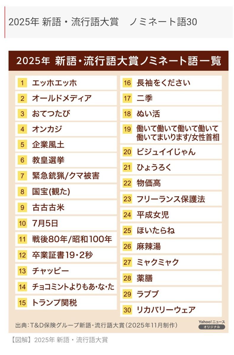 「日本人ファースト」の方が聞いたけれど、これは納得の大賞です。 2025年「新語・流行語大賞」 - Yahoo!ニュース news.yahoo.co.jp/pages/20251201a