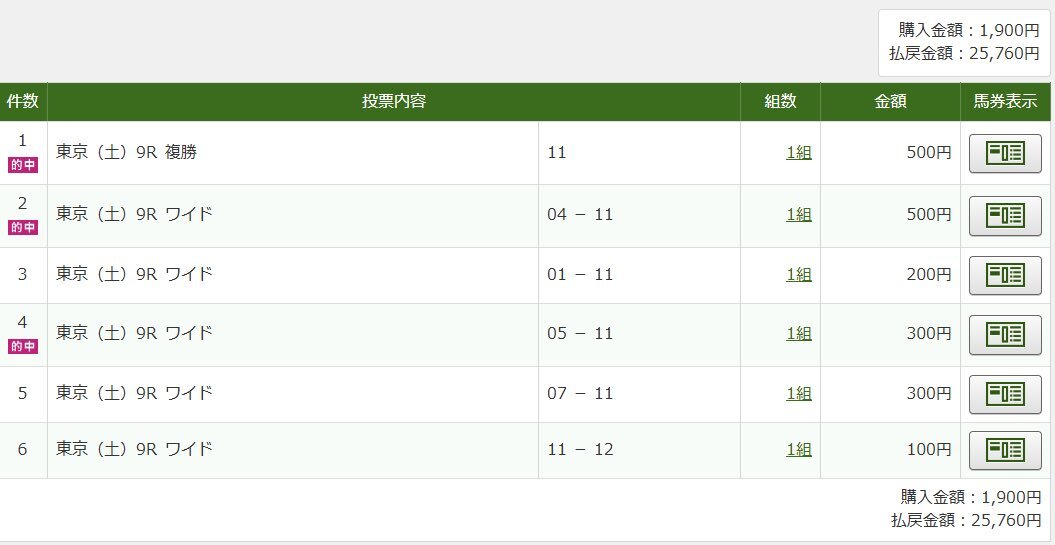 土曜競馬お疲れ様でした! 今日は◎ドンエレクトス、東京最終の馬連🎯で快勝。当たった2つ以外は総じて難しい日でしたけどね。ツキが巡ってきたかな。 明日はいよいよジャパンC。夜に全頭評価をアップします。3年連続の的中目指して頑張ります! ではまたのちほど👋