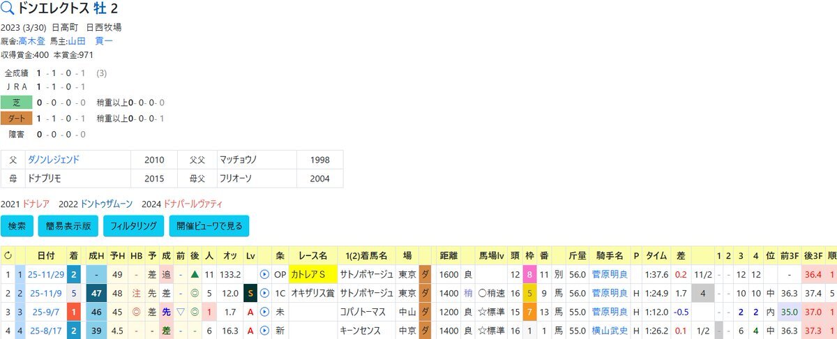 #スペシャルウィーク血族馬 東京9R カトレアS ⑪ドンエレクトス🏇 (父ダノンレジェンド 母母ドナビジュー 母母父スペシャルウィーク) 11番人気での2着🥈 最後方からの競馬🏇 直線では大外から凄い脚で追い込んできました🤩 11番人気で馬券も波乱です😁 #ドンエレクトス pic.x.com/Ibrw2gwoi8