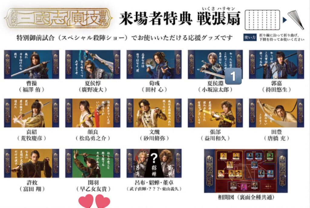 【交換】剣劇「三國志演技〜曹魏~」 戦張扇 来場者特典 ハリセン 《譲》郭嘉(持田悠生さん) 《求》曹操(福澤侑さん) 11/29夜公演にて手渡し 又は後日都内手渡し 未使用なもの同士の交換希望です。 よろしくお願いいたします。