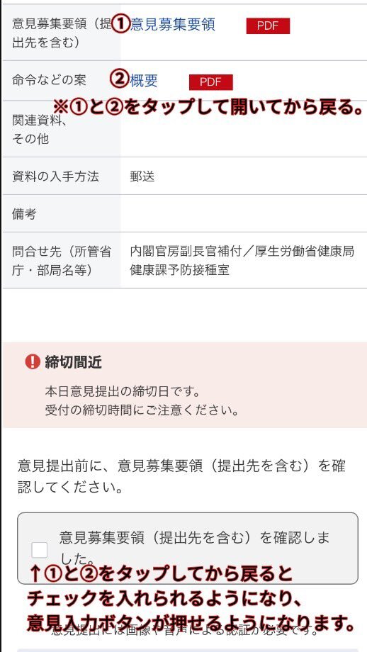 ワクチンパスポートへの意見を国が募集しています。今動かないとワクパスが出来上がってしまいます‼️ 『予防接種法施行規則の一部改正案に係る意見募集について』 期日11/17〜11/30 23時59分 こちらから直接飛べます パプコメ、スマホ用 public-comment.e-gov.go.jp/servlet/Public… 入力手順が分からない方は↓を参考に pic.x.com/a67e1pjMdN