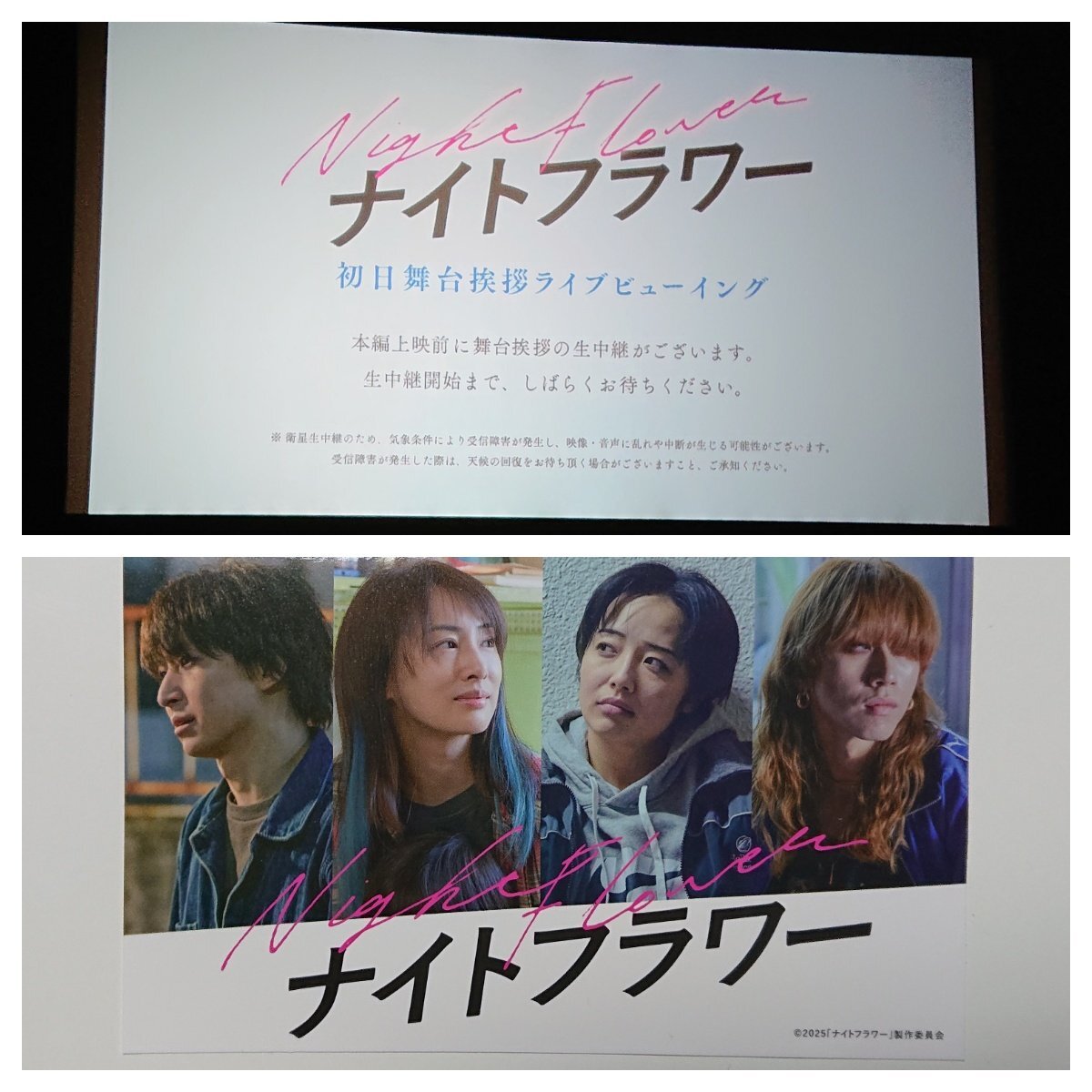 初日舞台挨拶ライビュ!皆さんの演技に圧倒され、胸が熱くなった。心に響く素晴らしい作品。舞台挨拶も楽しめたなぁ…華金最高♪ #ナイトフラワー #ナイトフラワー見た pic.x.com/6etXvDQbq8