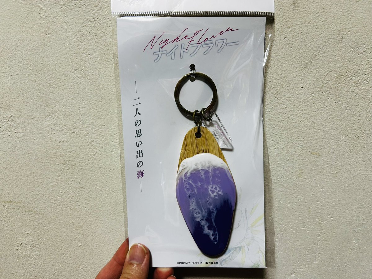 #ナイトフラワー 初日舞台挨拶付き上映鑑賞してきました! さっくんの生「ドロォォォ」を聞けるとはww 上映前の役者陣が美しくて和やかで可愛らしかったので本編とのギャップが凄まじくて情緒ぐちゃぐちゃ 鑑賞後はこのキーホルダーを購入せずにはいられなかったよ…切ない…泣 #ナイトフラワー見た pic.x.com/tUnNKsb5gc